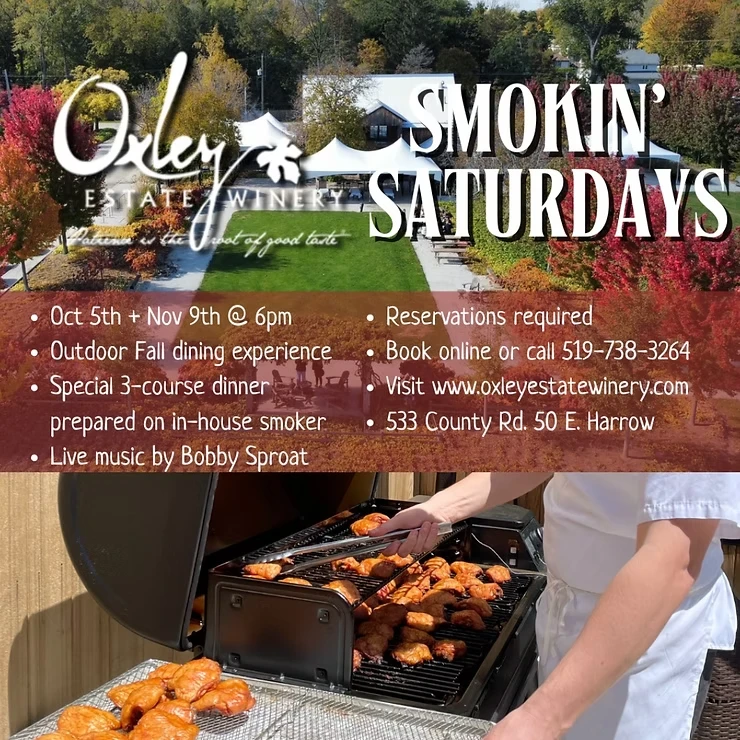 Starting October 5th, Oxley brings you their Smokin’ Saturdays, a unique outdoor fall dining experience that’s all about celebrating great food, wine, and live music. Imagine this: the sun sets over the vineyard, you’re enjoying a delicious three-course dinner prepared on their in-house smoker, and the evening’s entertainment is courtesy of the talented Bobby Sproat (October 5th) and Jen Knight (November 9th). Sounds like the perfect way to unwind, right?