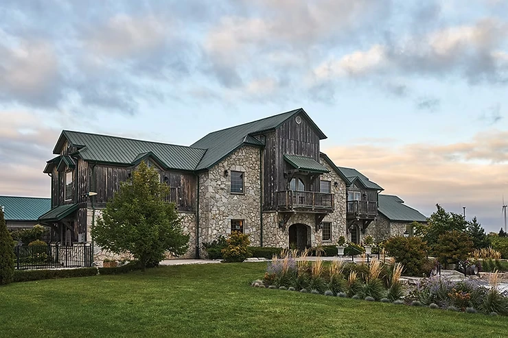 When Martin Gorski set out to build a winery, he had two instructions for his architect: One, build it out of stone, wood, and glass; and two, bring the outside in. The result was a sustainably minded building that lets natural light flood in and resembles an upscale cabin. The upper deck looks over a mile of tree line. On a clear day, you can see Detroit’s Renaissance Center, Gorski says.